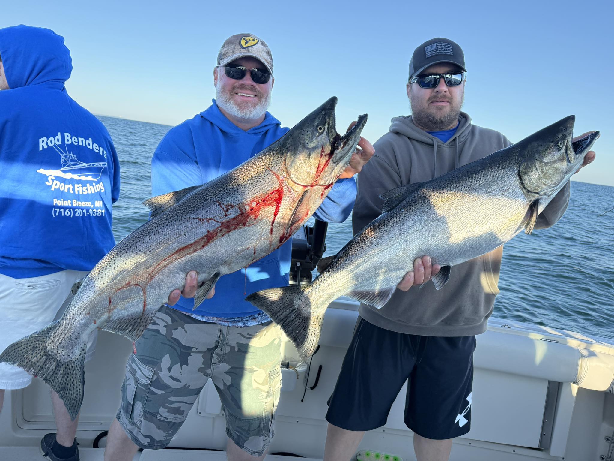 Step into the action with the Rod Benders Sport Fishing media gallery. Browse a collection of real moments featuring guests reeling in Chinook Salmon, Coho Salmon, Lake Trout, Brown Trout, and Rainbow Trout (Steelhead) from the waters of Lake Ontario. You'll also see our experienced guides on the water, using expert techniques to put anglers on the fish. From sunrise departures to cooler-packed returns, these images capture the energy and satisfaction of a productive day on the lake.